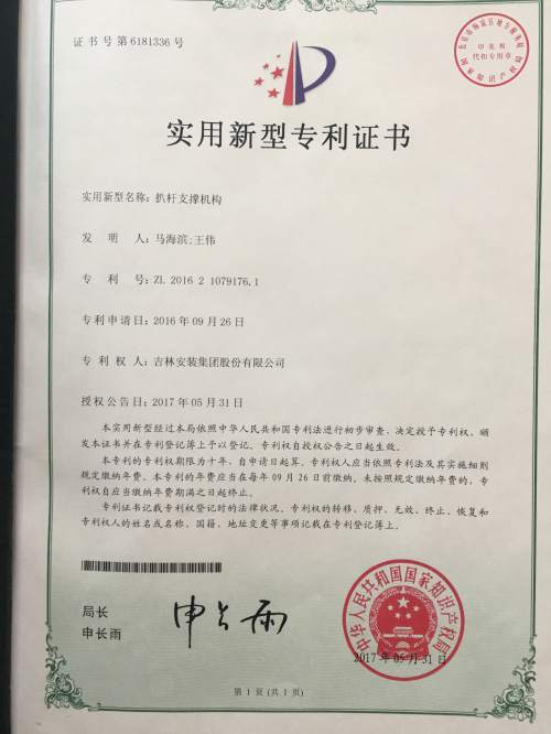 專利二扒桿支撐機(jī)構(gòu)實(shí)用新型專利證書