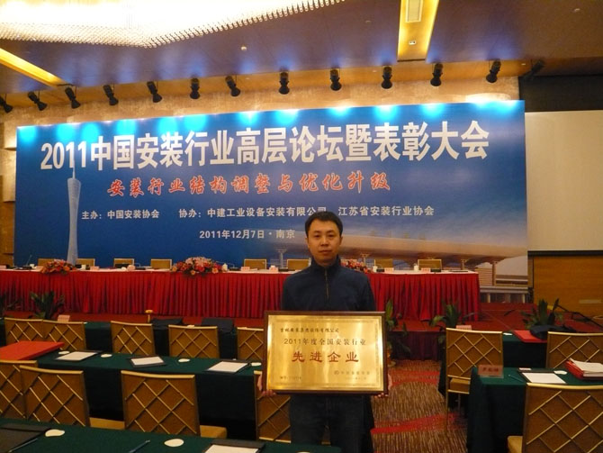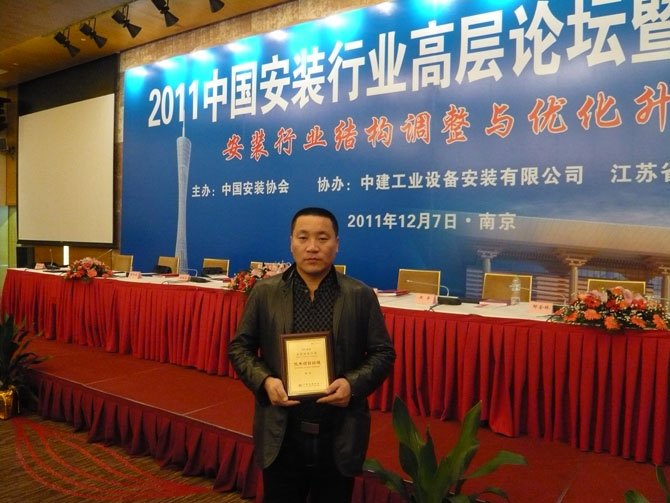 12月7日,“2011中國安裝行業(yè)高層論壇暨表彰大會(huì)”在南京召開,安裝集團(tuán)董事長孫萌光、副總裁薛克明、項(xiàng)目經(jīng)理馬海濱、謝凱參加會(huì)議,并榮獲2011年度全國安裝行業(yè)先進(jìn)企業(yè)、優(yōu)秀企業(yè)家和優(yōu)秀項(xiàng)目經(jīng)理稱號(hào)。會(huì)上,還聽取了建設(shè)部領(lǐng)導(dǎo)和行業(yè)專家有關(guān)安裝行業(yè)結(jié)構(gòu)調(diào)整與優(yōu)化升級的重要講話。 |