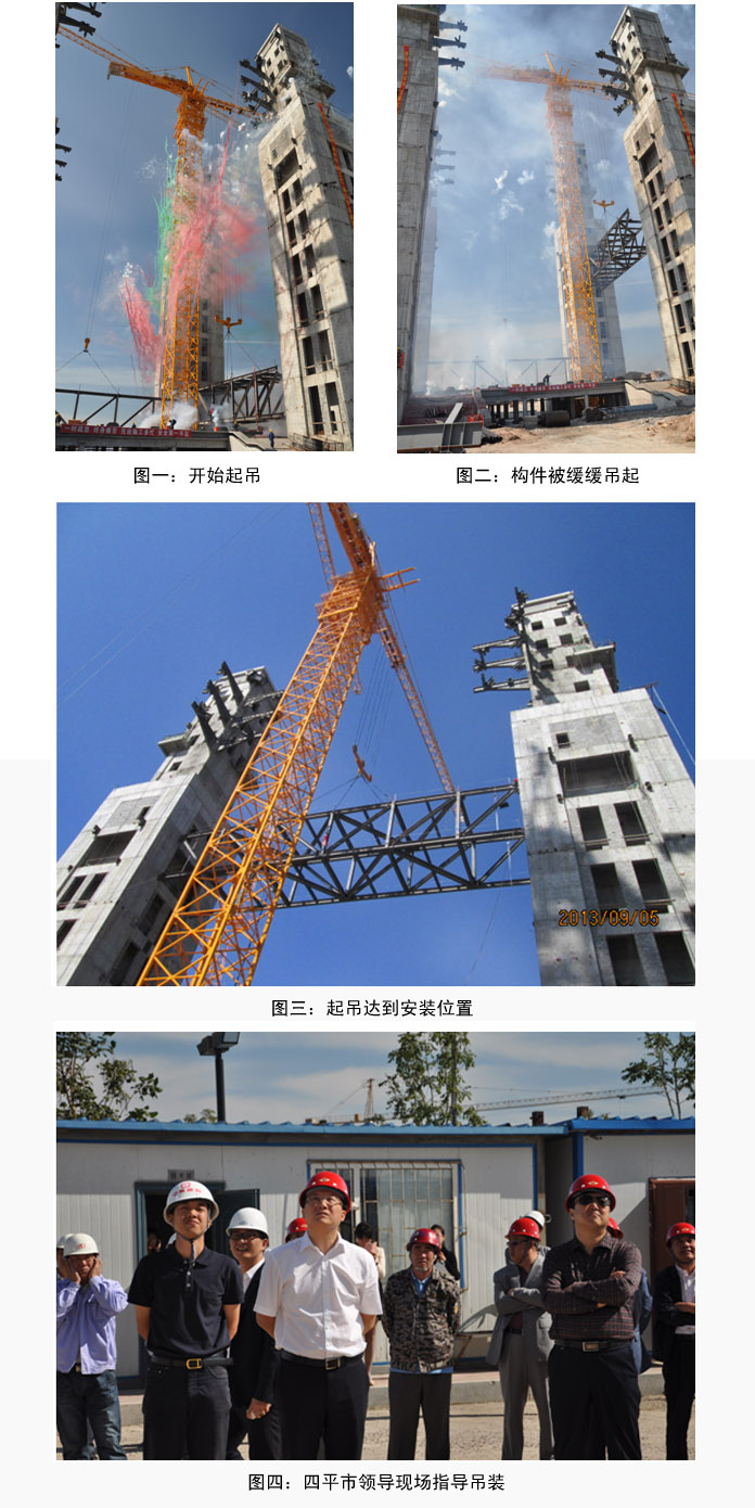 由我公司總包施工的四平規(guī)劃展示館工程鋼結(jié)構(gòu)連廊部位于2013年9月5日上午9時(shí)18分成功起吊,標(biāo)志著該工程進(jìn)入鋼構(gòu)架全面施工階段。 空中鋼結(jié)構(gòu)連廊分為東西南北四個(gè)連廊結(jié)構(gòu)。本次起吊的西側(cè)鋼結(jié)構(gòu)連廊,連接西側(cè)的兩個(gè)砼核心筒體,安裝標(biāo)高32.85~38.25米,連廊本體高度達(dá)5.85米,跨度36.6米,寬度6.7米,鋼結(jié)構(gòu)總重約60 噸。連廊結(jié)構(gòu)主要采用H型鋼組成,主要采用栓焊節(jié)點(diǎn)?,F(xiàn)場選用二臺D1100-63重型塔式起重機(jī),作為鋼結(jié)構(gòu)的施工起重機(jī)械。
