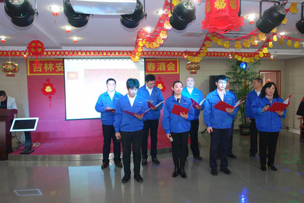 迎新酒會于中午時分正式開場,首先欣賞到是由集團全體員工共同錄制而成的VCR,這里有熟悉的場景,有微笑的臉龐,更有深深的祝福,表達了我們對彼此,對公司最深刻的感情。在這溫暖而喜慶的氣氛中,集團公司董事長孫萌光先生致新年賀詞,向辛勤工作的全體員工及家屬致以節(jié)日的問候和真誠的祝福,感恩過去一年大家共同的努力,也展望了新的一年美好的愿景。隨后酒會正式拉開帷幕,由各部門和各分公司精心準(zhǔn)備的節(jié)目依次上演,今年的節(jié)目內(nèi)容豐富多彩,效果精彩紛呈,歌舞、小品 、詩歌朗誦等節(jié)目更是老形式玩出新花樣,處處給人以驚喜和驚嘆,游戲環(huán)節(jié)也是別開生面,新意十足,大家積極參與,場面熱鬧非凡。而今年的頒獎環(huán)節(jié)也是讓人充滿期待和感動,每個獎項都透露著公司領(lǐng)導(dǎo)的良苦用心和慧眼英名,這些獎項用以感謝這一年對公司有突出貢獻的員工,以表鼓勵和寄予厚望。最激動人心的抽獎環(huán)節(jié)更是給酒會增加了一些緊張的氣氛,掀起一個又一個高潮,在欣賞節(jié)目的同時,領(lǐng)導(dǎo)與全體員工觥籌交錯,開懷暢飲 ,每個人都在表達自己的感謝和祝福,歡歌和笑語環(huán)繞著整場酒會,當(dāng)酒會接近尾聲,大家走到臺前,我們手挽著手,肩并著肩,飽含深情共同高唱《安裝之歌》。我們以安裝為榮,以是安裝人為榮,2017年迎新酒會至此落下帷幕。