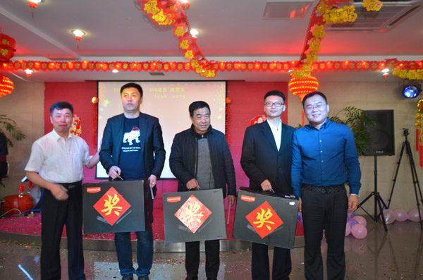迎新酒會于中午時分正式開場,首先由集團公司董事長孫萌光先生為大家致新年賀詞,首先對辛勤工作一整年的全體員工表示真心的感謝和肯定,同時也對集團公司未來的發(fā)展進行展望和規(guī)劃,最后向全體員工及其員工家屬致以節(jié)日問候和新年祝福,伴隨著熱烈的掌聲,迎新酒會正式拉到帷幕,各部門精心編排的節(jié)目逐一上演,今年的節(jié)目更注重創(chuàng)新化和多樣化,將歌曲、舞蹈、朗誦等單一的節(jié)目串聯(lián)在一起,精彩紛呈,讓人耳目一新,拍手叫好,穿插在節(jié)目中的抽獎環(huán)節(jié),更是將酒會氣氛推向一個又一個高潮,新年伊始,每個人都希望有幸運的降臨,而頒獎環(huán)節(jié)則更多的透露出領導的用心和公司的溫情,每一位對公司有突出貢獻的人都被領導看在眼里,記在心上,表彰和獎勵雖只是一種形式,但也是對付出的一種回報、一種激勵。