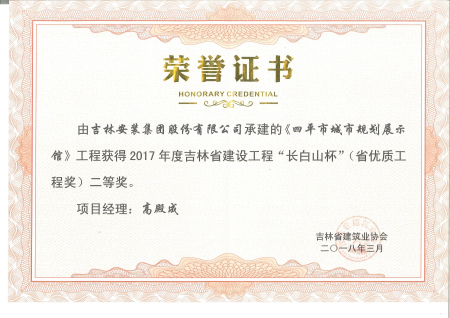 四平市城市規(guī)劃展覽館項目 榮獲2017年度吉林省優(yōu)質(zhì)工程(長白山杯)獎 |