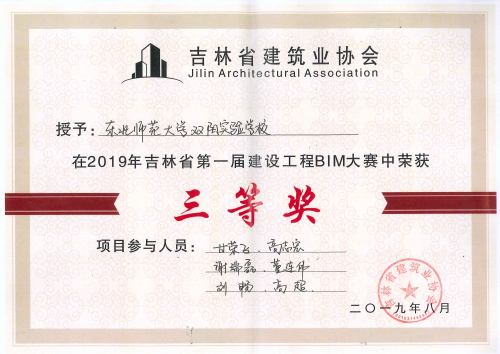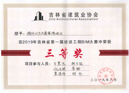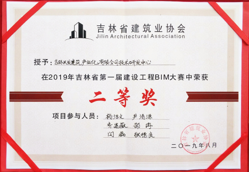 在集團董事長的大力支持下和集團領(lǐng)導的指導下,集團申報的《梅河口恒大翡翠灣》項目和《東北師范大學雙陽實驗學?!讽椖繕s獲三等獎,《吉林長發(fā)建筑產(chǎn)業(yè)化有限公司技術(shù)研發(fā)中心》項目榮獲二等獎。三個項目均獲得2019年吉林省第一屆建設(shè)工程BIM大賽---BIM應用示范項目。