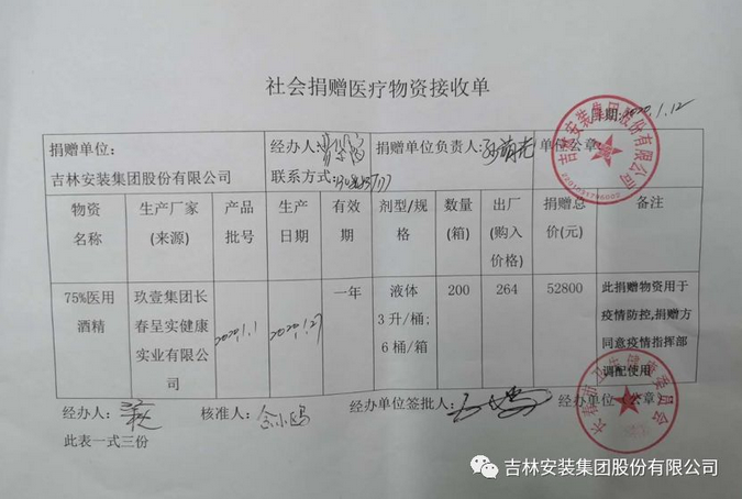 集團(tuán)通過(guò)長(zhǎng)春市紅十字會(huì)向長(zhǎng)春市中心醫(yī)院、長(zhǎng)春市急救中心、長(zhǎng)春市人民醫(yī)院、長(zhǎng)春市寬城區(qū)衛(wèi)建局、長(zhǎng)春市綠園區(qū)衛(wèi)建局、長(zhǎng)春市雙陽(yáng)區(qū)醫(yī)院、吉林省肝膽病醫(yī)院、榆樹(shù)市衛(wèi)建局、農(nóng)安縣衛(wèi)建局等九家單位共捐贈(zèng)200箱防疫酒精防疫控疫物資,集團(tuán)綜合辦公室郭殿華主任接受長(zhǎng)春市衛(wèi)健委宣傳處電話(huà)采訪(fǎng),代表集團(tuán)表達(dá)了對(duì)此次疫情的高度關(guān)注和疫情災(zāi)區(qū)的慰問(wèn)。