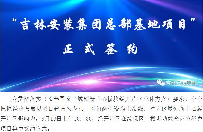 吉林安裝集團(tuán)總部基地項(xiàng)目正式簽約