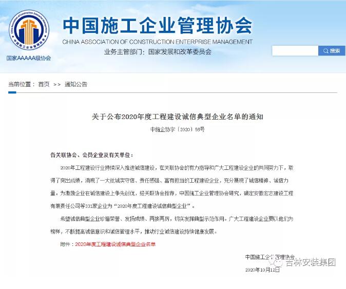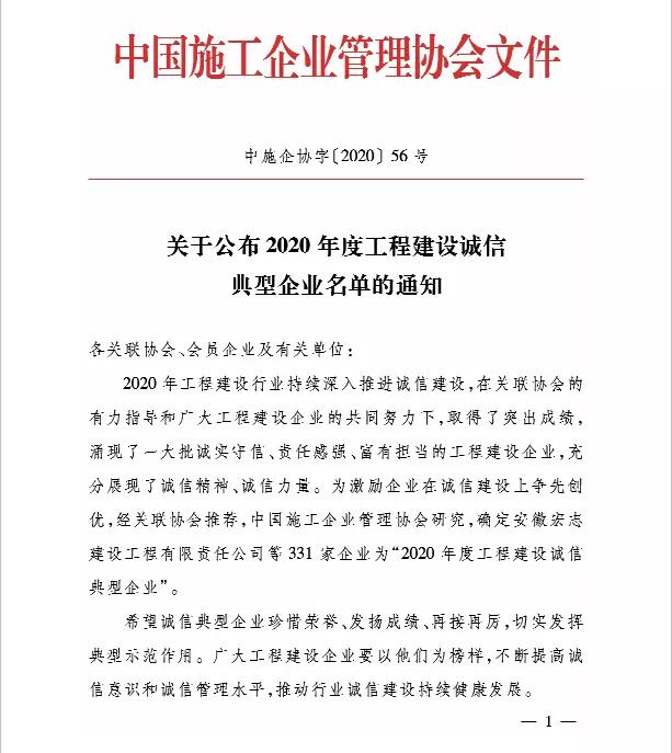 集團榮獲2020年度工程建設誠信典型企業(yè)稱號 |