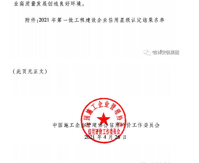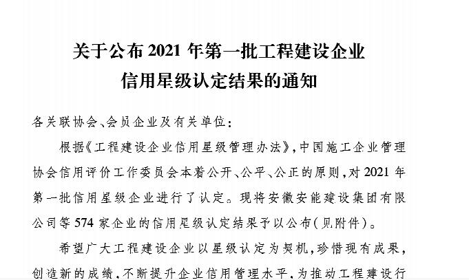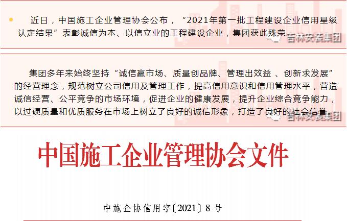 集團榮獲2021年度工程建設企業(yè)信用5星認定