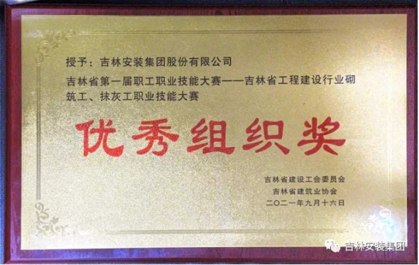 2021年9月16日,吉林省第一屆職工職業(yè)技能大賽決賽舉行。經(jīng)過激烈的技能比拼,吉林安裝集團參賽選手巴吉壘項目抹灰工錢吉慶榮獲吉林省工程建設(shè)行業(yè)第一名。同時,公司榮獲最佳組織獎。