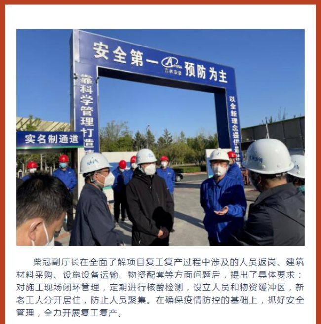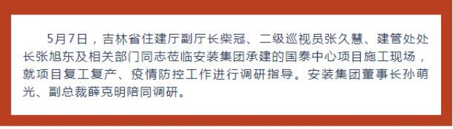省住建廳副廳長柴冠蒞臨國泰中心項目調研指導復工復產和疫情防控工作