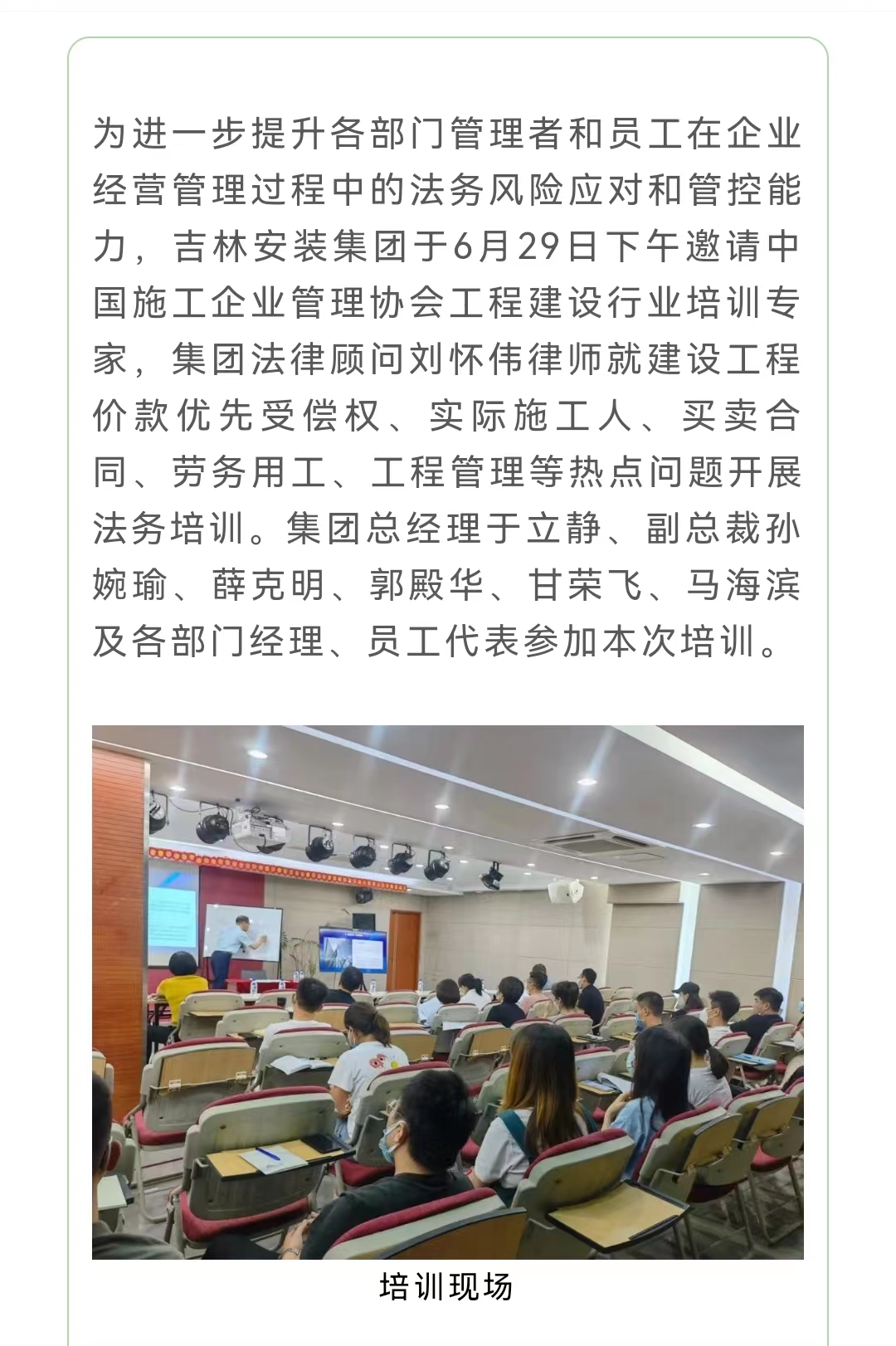 吉林安裝集團舉辦風(fēng)險管理法務(wù)培訓(xùn)