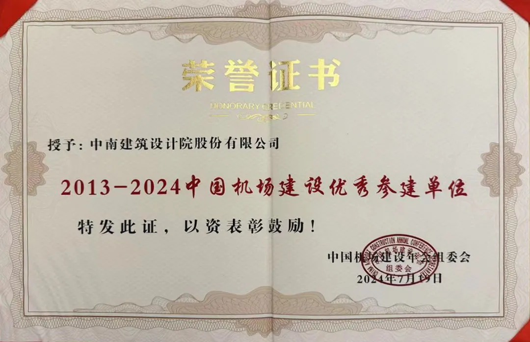 中南建筑設(shè)計院獲評“中國機場建設(shè)優(yōu)秀參建單位”