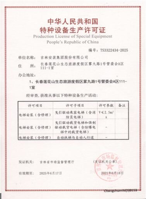 2021年6月18日,取得特種設(shè)備電梯許可證。