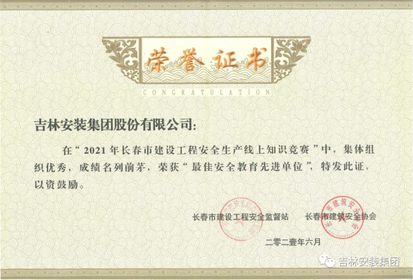 | 集團(tuán)公司榮獲最佳安全教育先進(jìn)單位 |