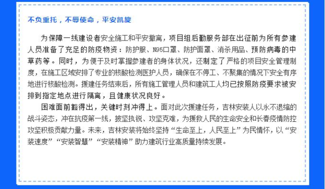 “疫”無反顧盡銳出戰(zhàn),凝心聚力守護家園 | 吉林安裝集團股份有限公司全力搶建“生命方舟”