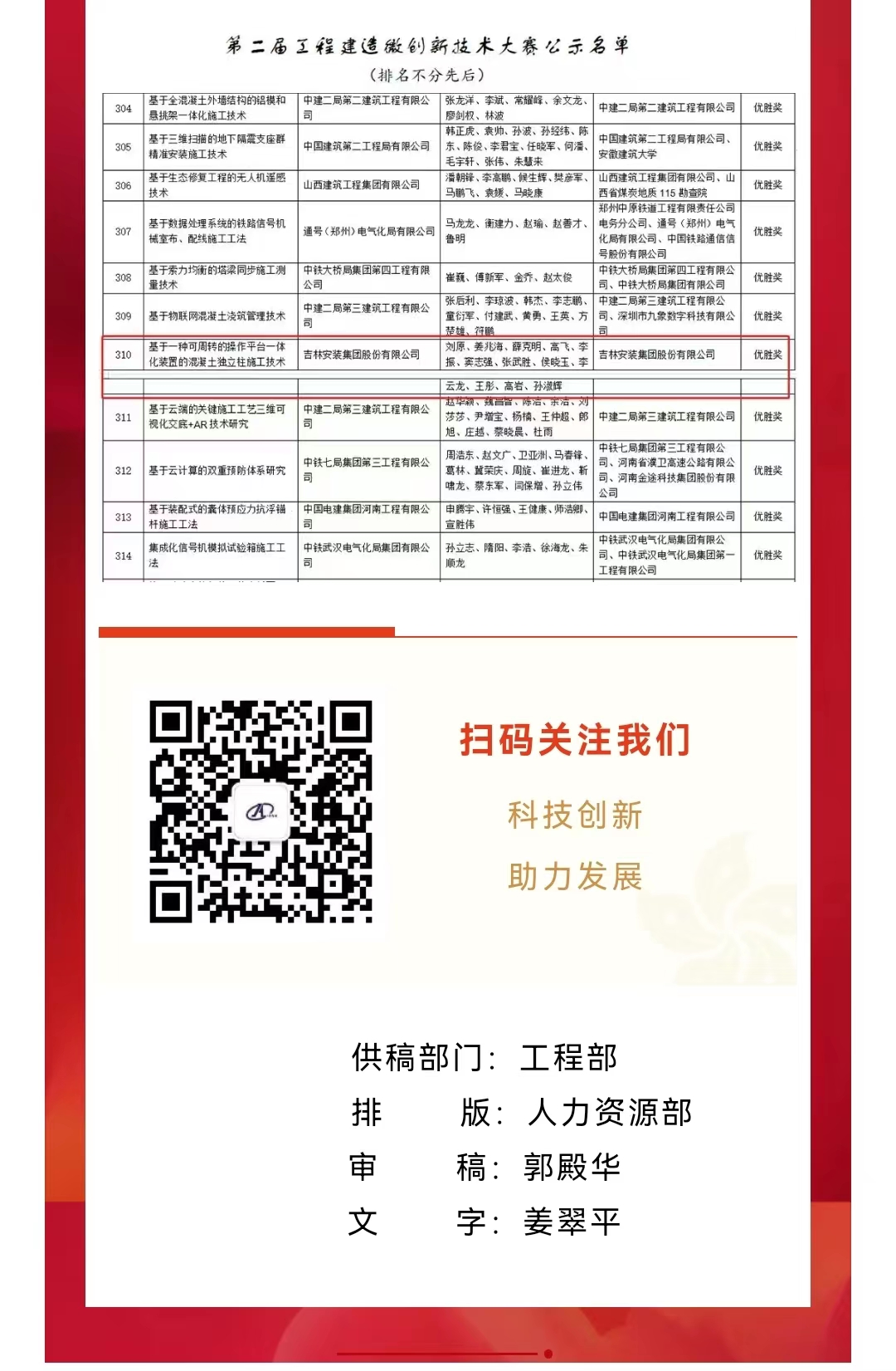 吉林安裝集團(tuán)喜獲第二屆工程建造微創(chuàng)新技術(shù)大賽優(yōu)勝獎(jiǎng)