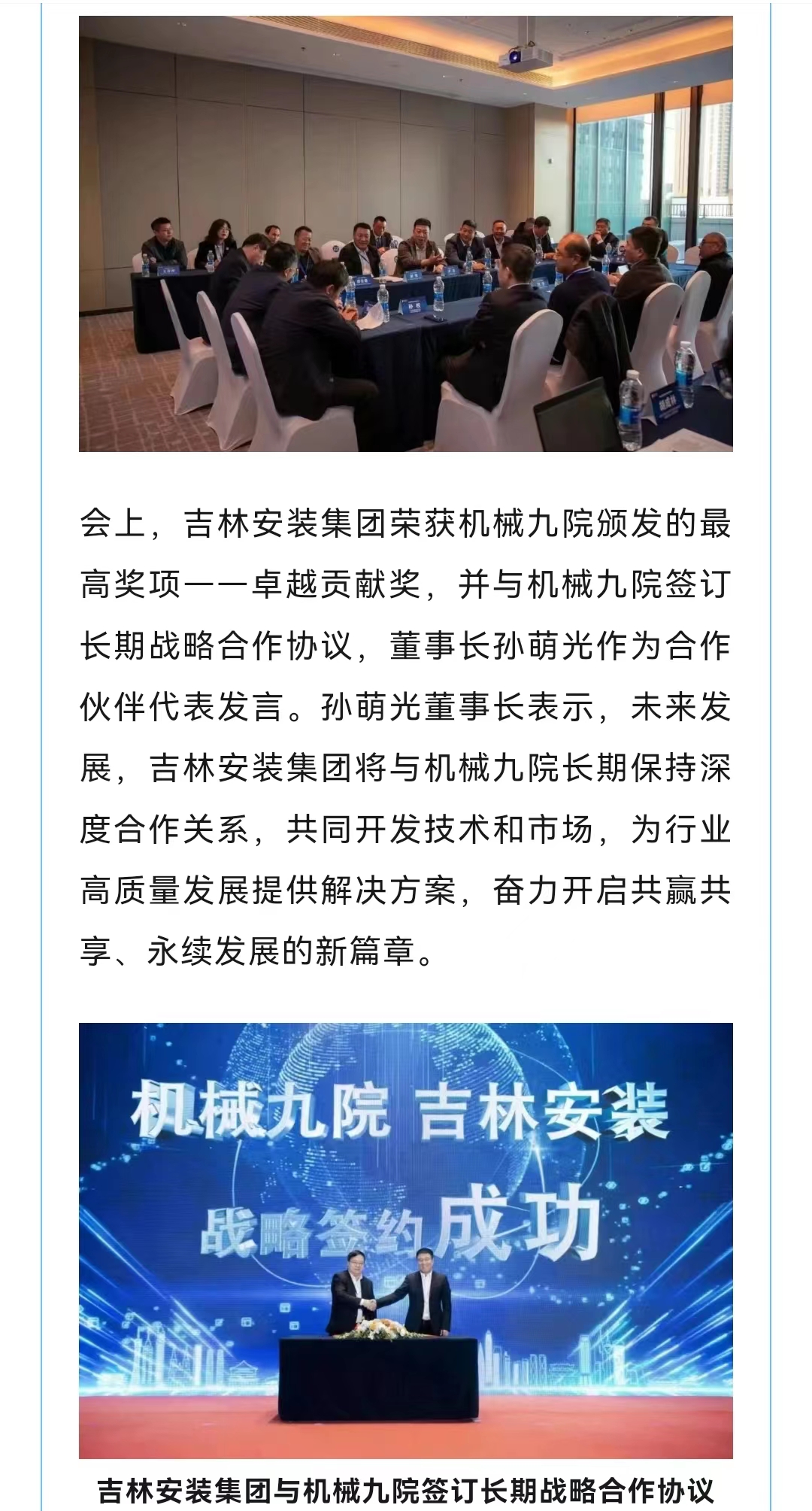 共贏共享,永續(xù)發(fā)展——吉林安裝集團與機械九院簽訂長期戰(zhàn)略合作協(xié)議