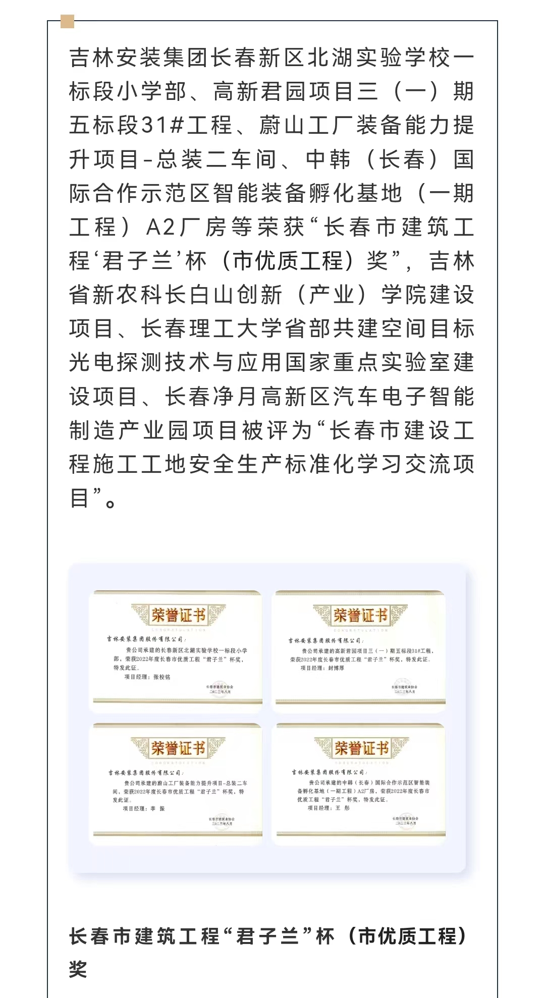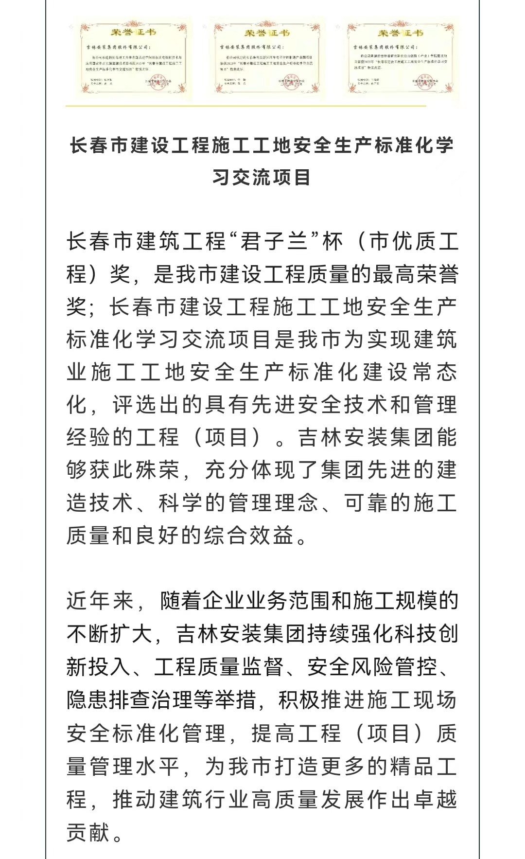 建精品 強(qiáng)安全 科技賦能筑匠心——吉林安裝集團(tuán)在2023年度評(píng)優(yōu)創(chuàng)先頒獎(jiǎng)大會(huì)喜獲殊榮