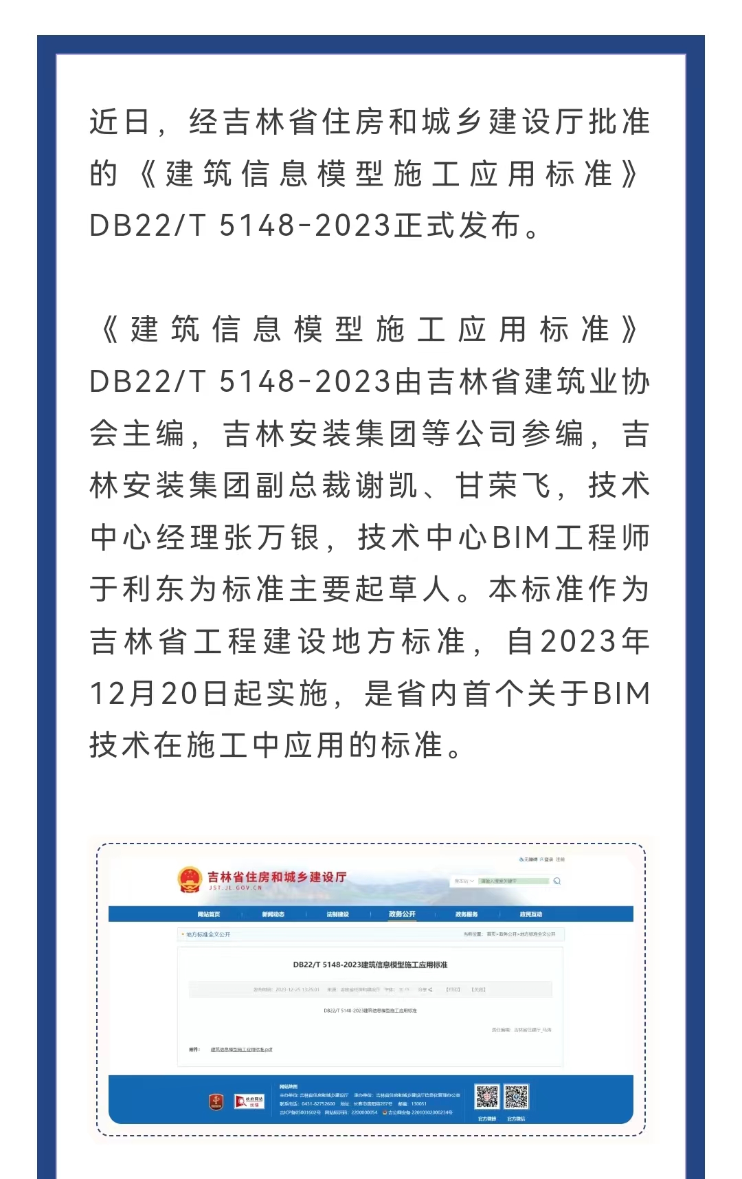 標(biāo)準(zhǔn)引領(lǐng),信息智企!吉林安裝集團(tuán)參編的吉林省《建筑信息模型施工應(yīng)用標(biāo)準(zhǔn)》正式發(fā)布實施