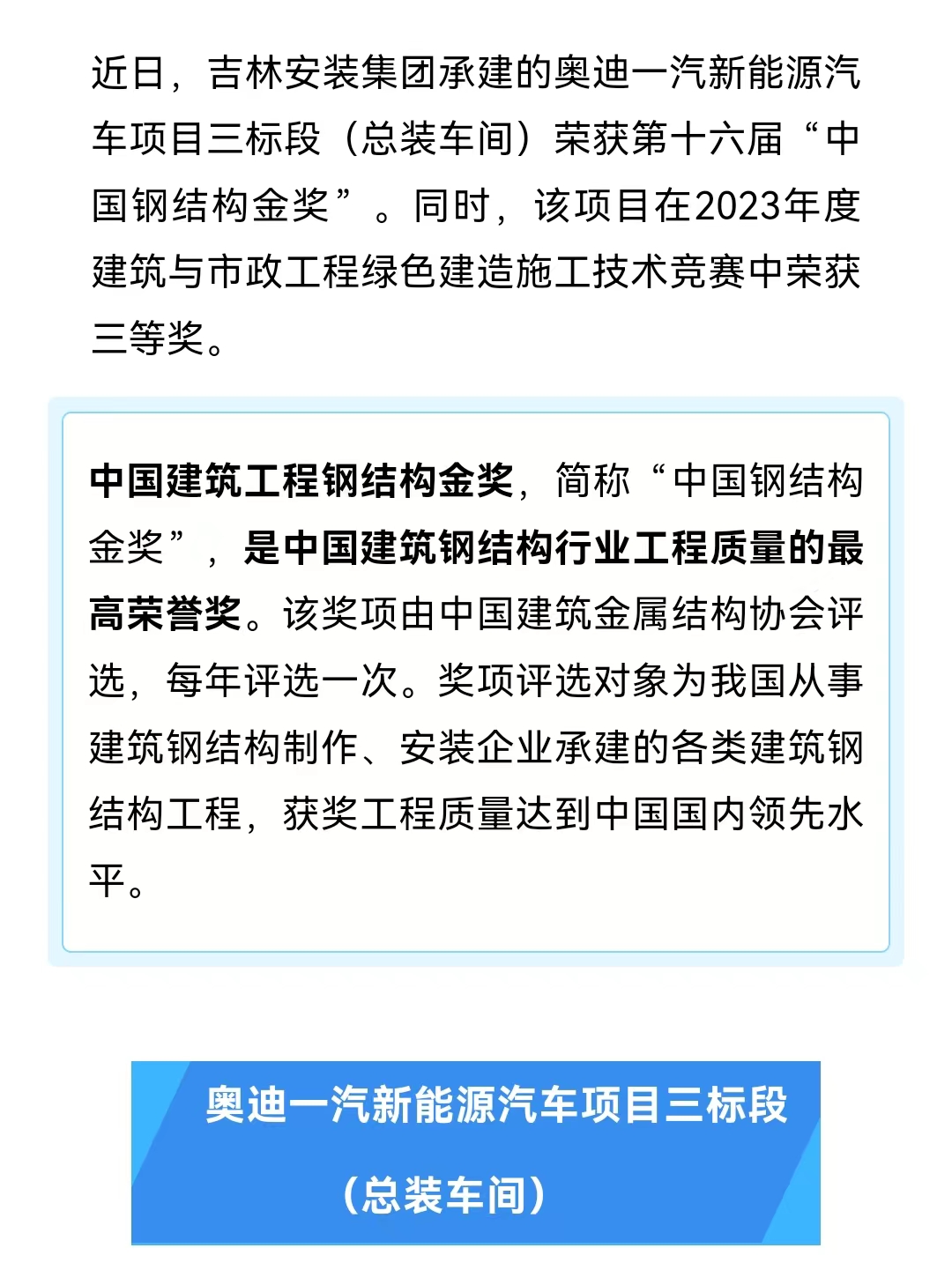 喜報(bào)|吉林安裝集團(tuán)榮獲“中國鋼結(jié)構(gòu)金獎(jiǎng)”等榮譽(yù)獎(jiǎng)項(xiàng)